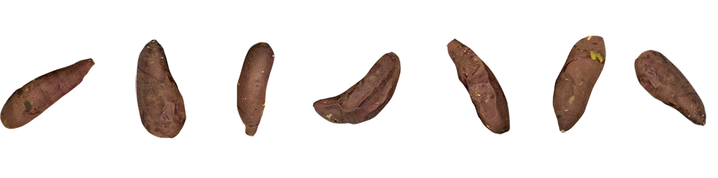 芋二郎のつぼ焼いもは一般的な加熱方法とは異なり、熱い空気で焼き上げ「もみ焼き」という技法を用いじっくりと手間をかけていますので、皮が焦げる事なく、しっとりとした焼き上がりになり、皮ごと食べられます。皮をむいて食べられたい方も、このもみ焼の効果でスルっと皮をむくことができます。